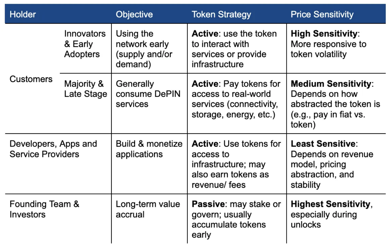 Token design is not just a technical exercise, it’s also about managing expectations across a diverse set of stakeholders, each with different objectives, time horizons, and sensitivities to token price volatility. These groups play different roles in the network’s life cycle and must be considered carefully during token launch, distribution, and evolution.